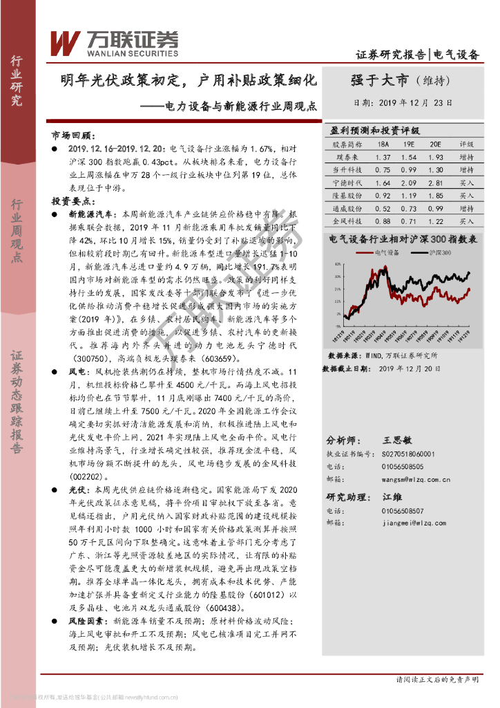 万联证券:电力设备与新能源行业周观点:明年光伏政策初定,户用补贴政策细化.pdf
