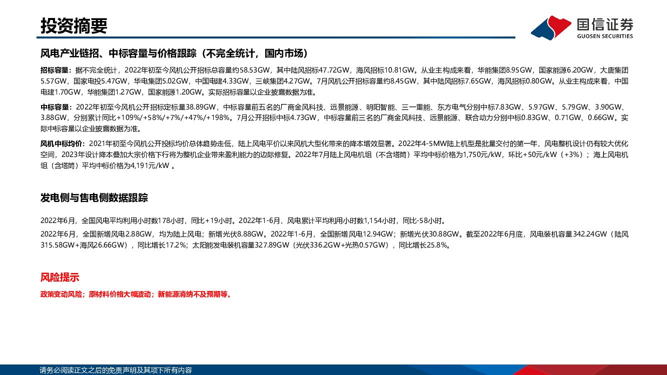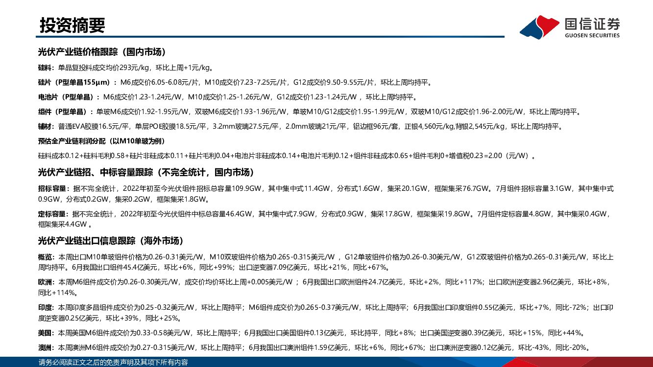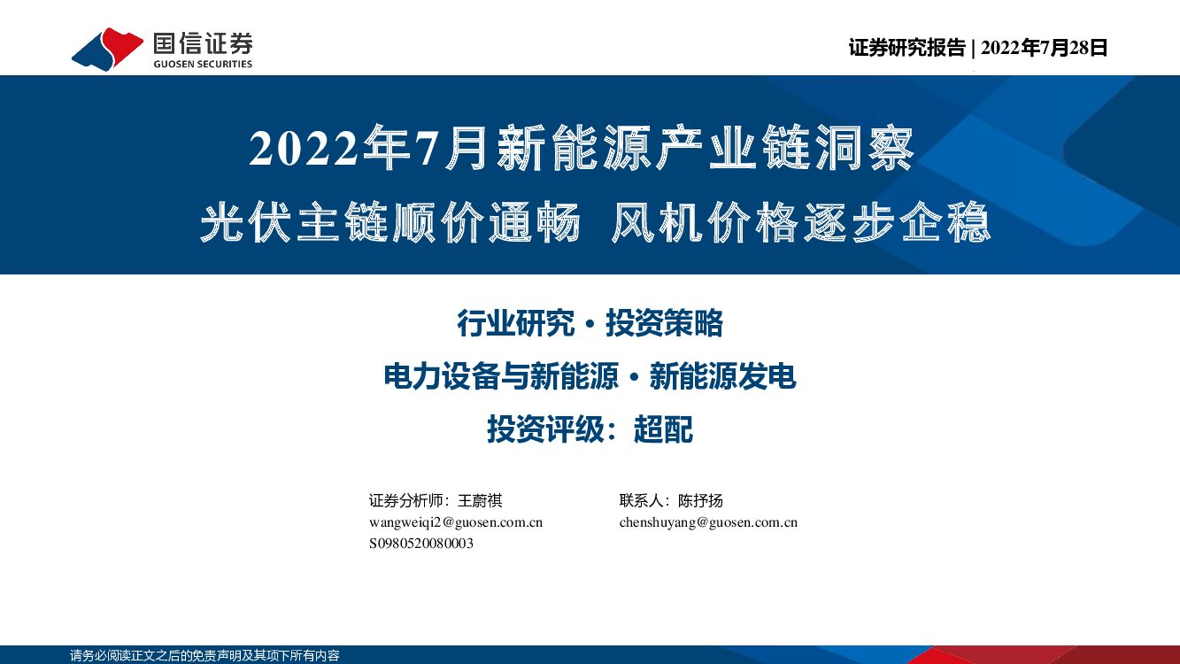 国信证券:2022年7月新能源产业链洞察:光伏主链顺价通畅 风机价格逐步企稳.pdf