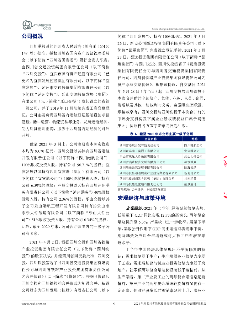 中诚信:四川省港航投资集团有限责任公司主体信用评级报告及跟踪评级安排.pdf