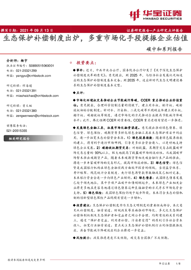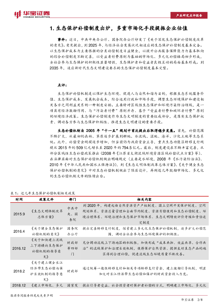 华宝证券:碳中和系列报告:生态保护补偿制度出炉,多重市场化手段提振企业估值.pdf