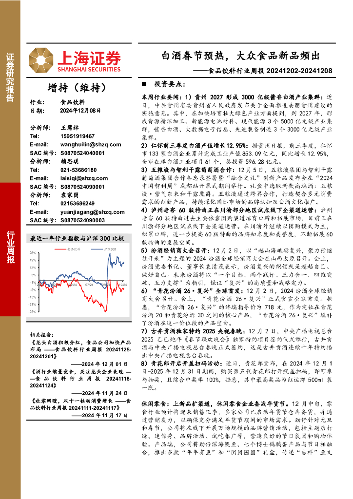 上海证券:食品饮料行业周报:白酒春节预热,大众食品新品频出.pdf