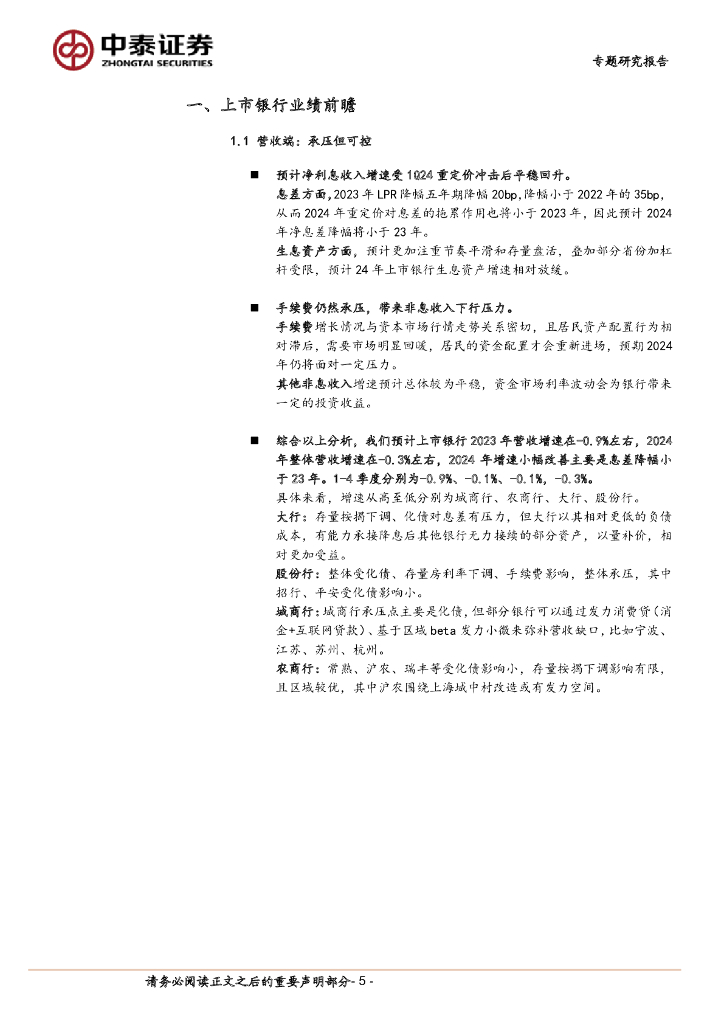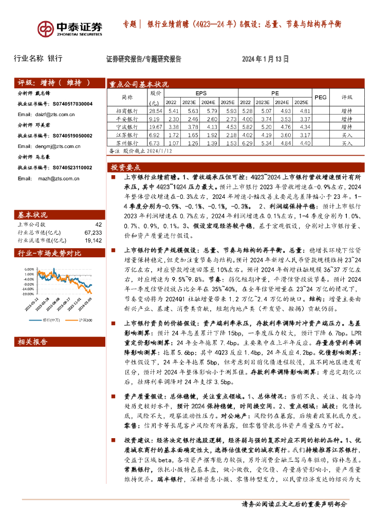 中泰证券:银行专题:银行业绩前瞻(4Q23—24年)&假设:总量、节奏与结构再平衡.pdf