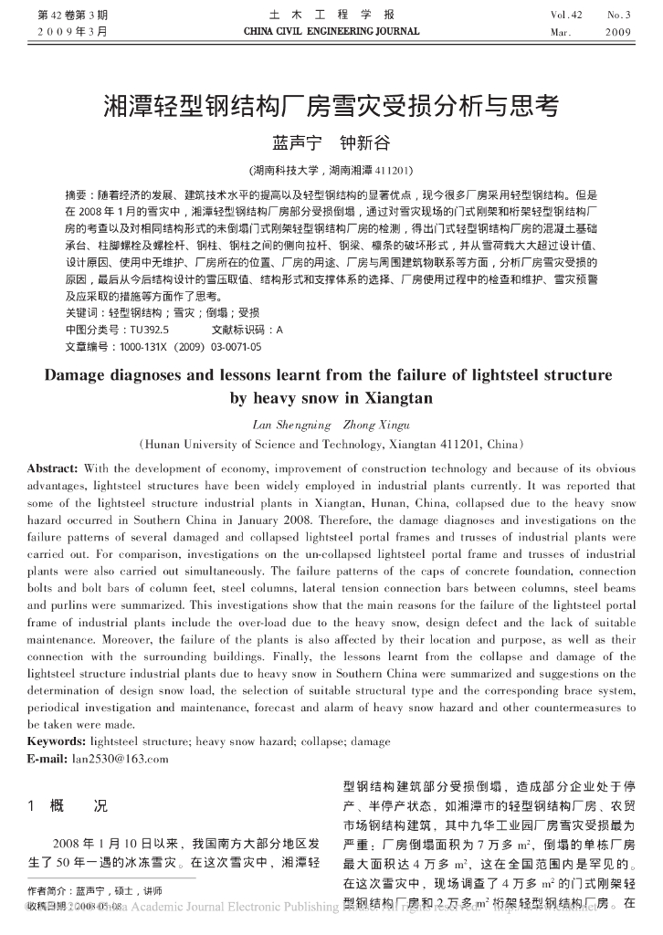 湘潭轻型钢结构厂房雪灾受损分析与思考.pdf
