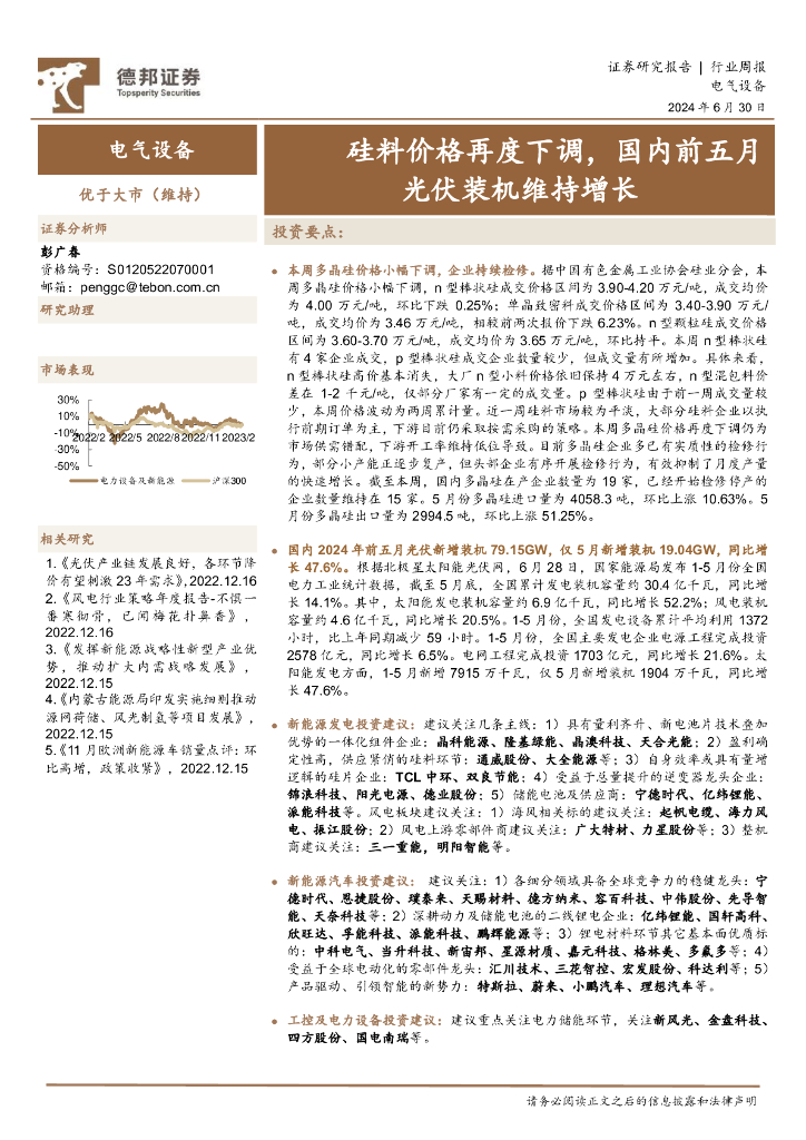 德邦证券:电气设备行业周报:硅料价格再度下调,国内前五月光伏装机维持增长.pdf