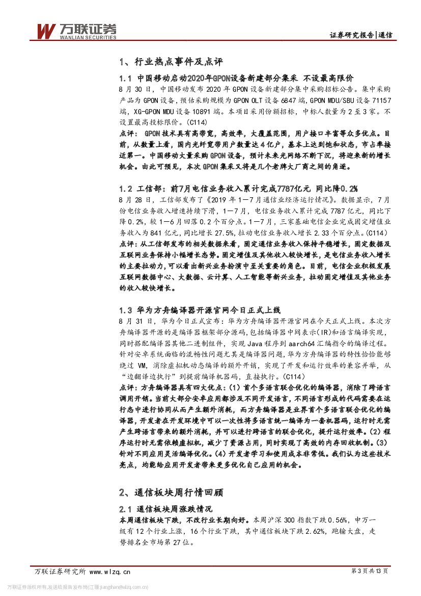 万联证券:通信行业周观点:中国移动开启GPON设备集采,不设限价.pdf