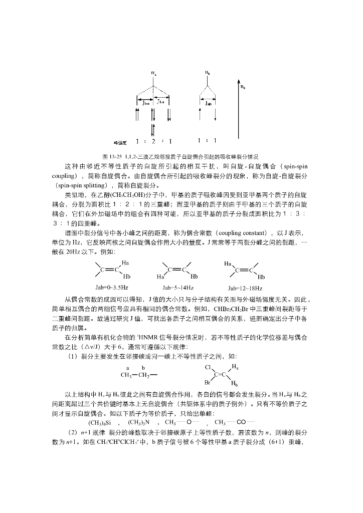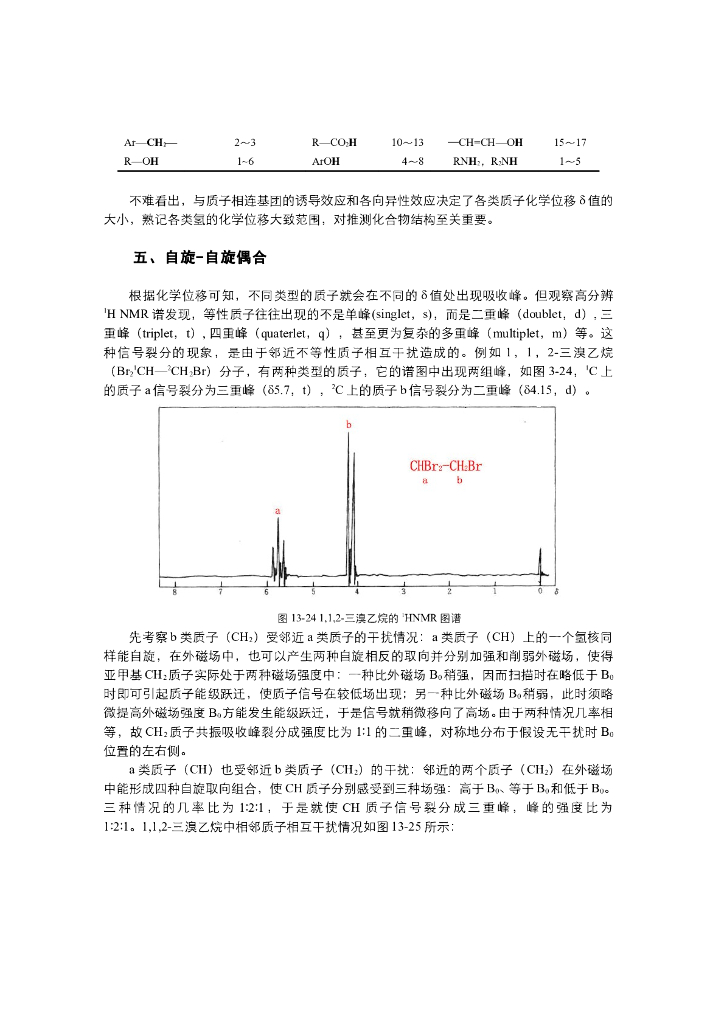 《有机化学》电子教材-影响化学位移的因素,自旋偶合与峰的裂分规律,图谱的解析.pdf