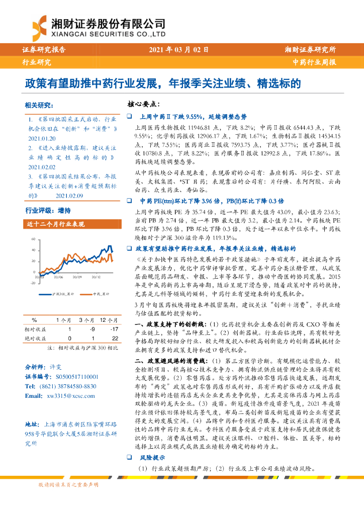 湘财证券:中药行业周报:政策有望助推中药行业发展,年报季关注业绩、精选标的.pdf