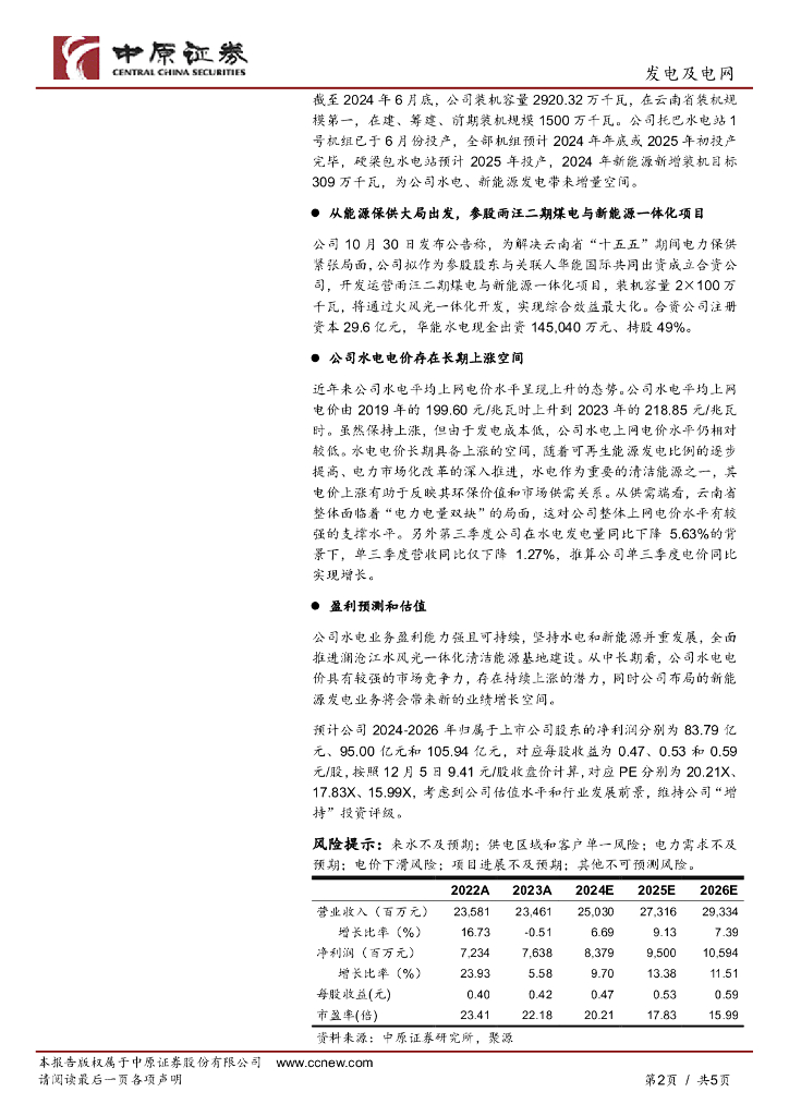 中原证券:华能水电(600025)-季报点评:参股煤电项目,水电电价长期具备上涨空间.pdf