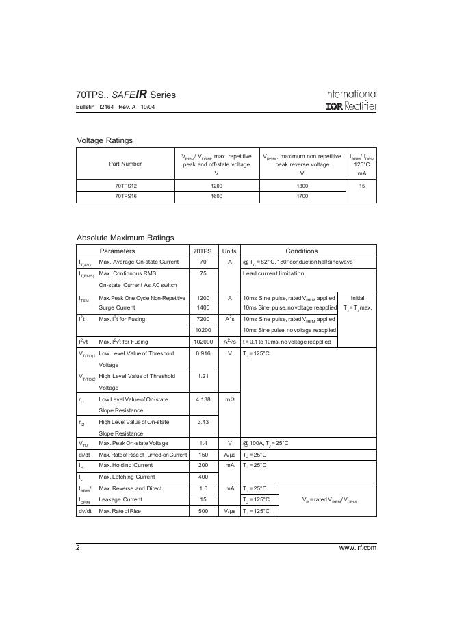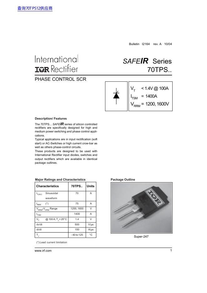 International IOR Rectifier SAFEIR Series 70TPS.. 数据手册.pdf