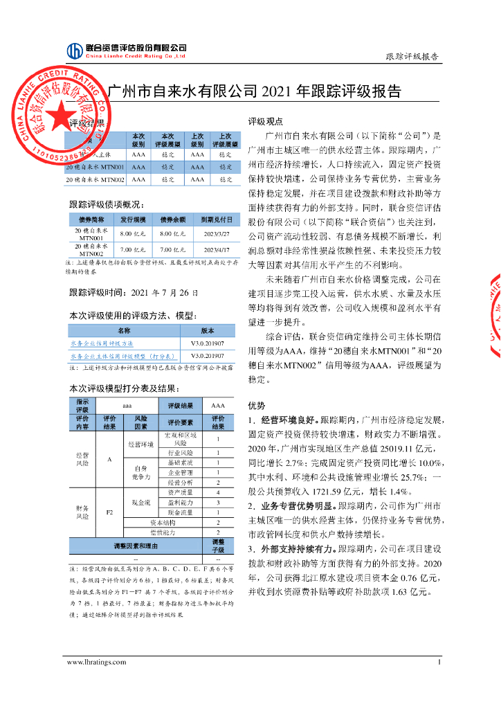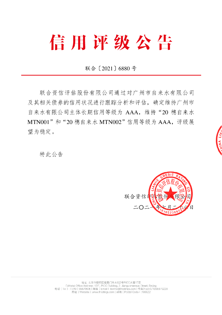 联合资信:广州市自来水有限公司2021年跟踪评级报告.pdf