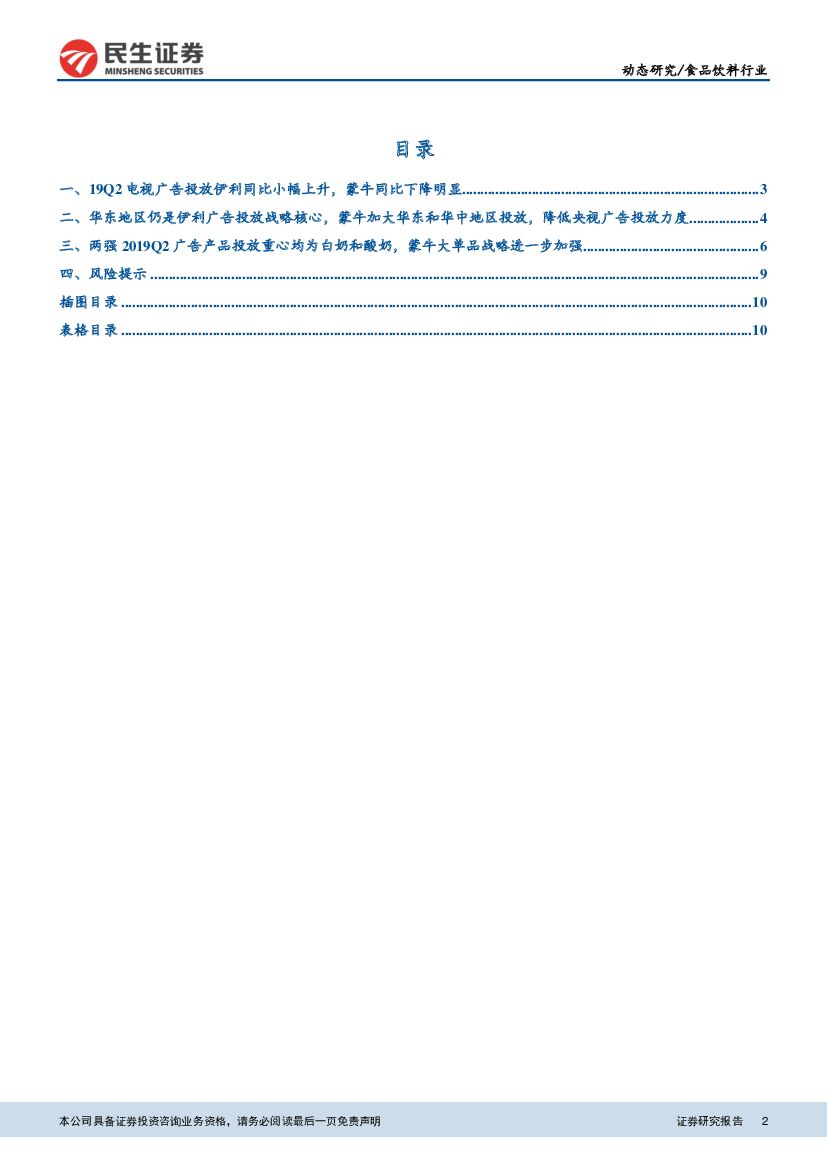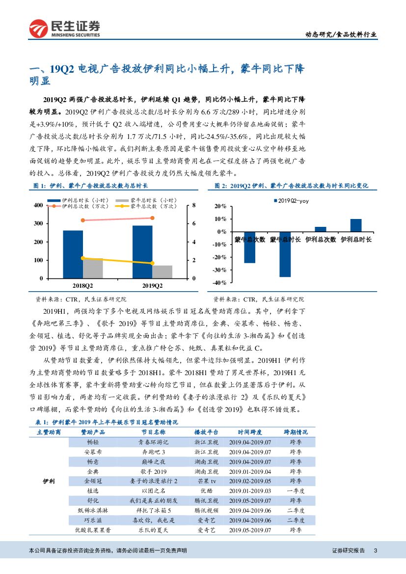 民生证券:食品饮料行业:19Q2伊利广告投放结构基本稳定,蒙牛进一步聚焦大单品.pdf