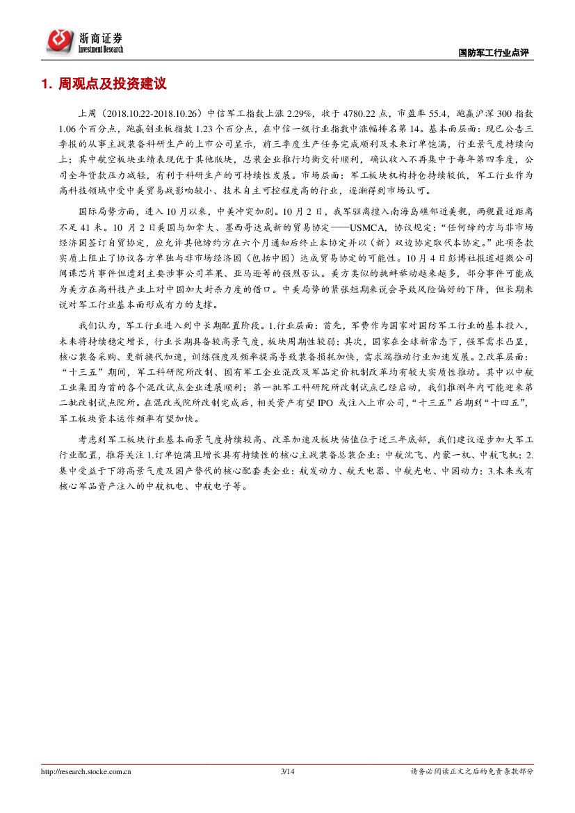 浙商证券:军工行业周报:三季报显示生产任务完成顺利,行业景气度持续向好.pdf