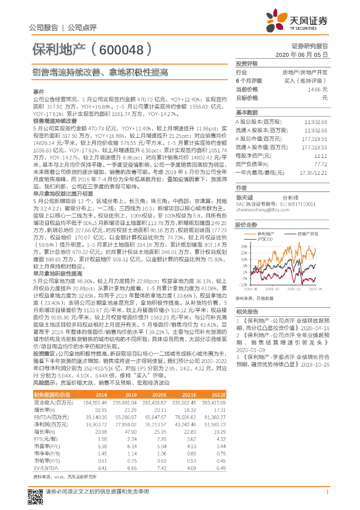 天风证券:保利地产(600048)-销售增速持续改善、拿地积极性提高.pdf