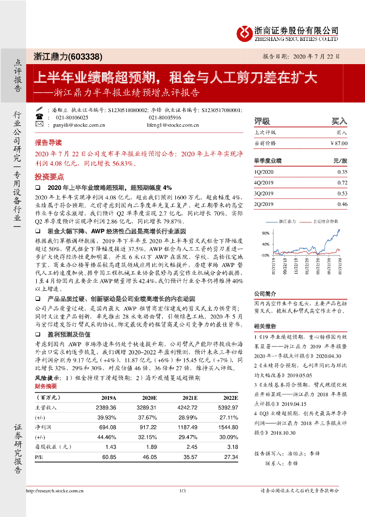 浙商证券:浙江鼎力半年报业绩预增点评报告:上半年业绩略超预期,租金与人工剪刀差在扩大.pdf