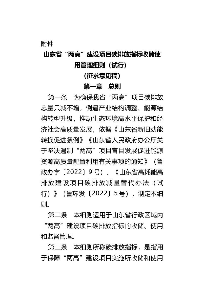 山东省“两高”建设项目碳排放指标收储使用管理细则(试行)(征求意见稿).doc