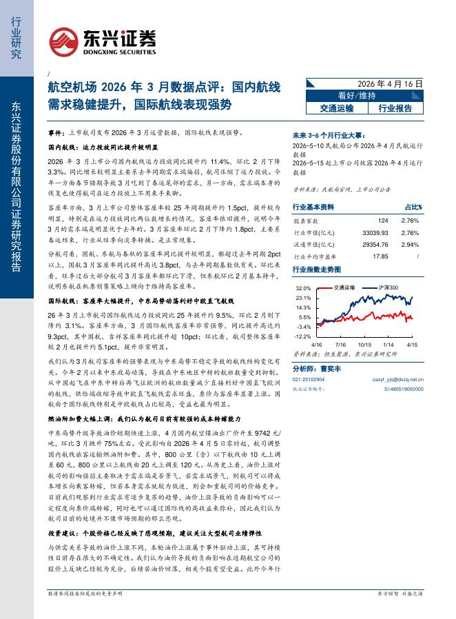 东兴证券:航空机场2026年3月数据点评:国内航线需求稳健提升,国际航线表现强势.pdf