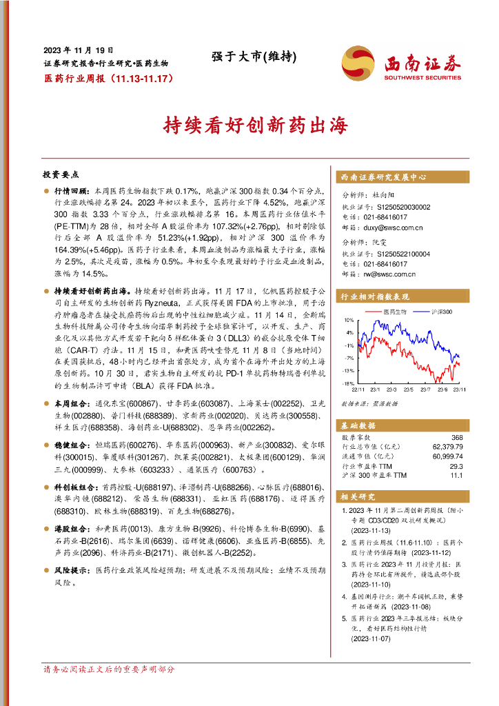 西南证券:医药行业周报:持续看好创新药出海.pdf