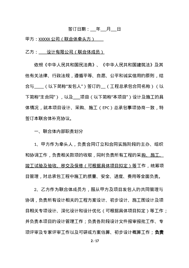 工程总承包联合体协议书示范文本.doc