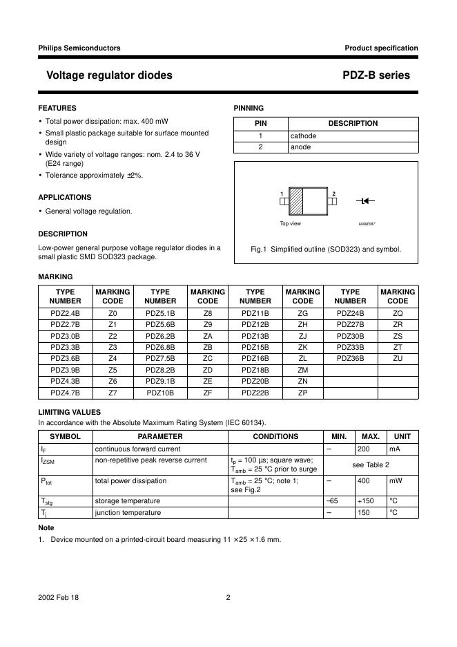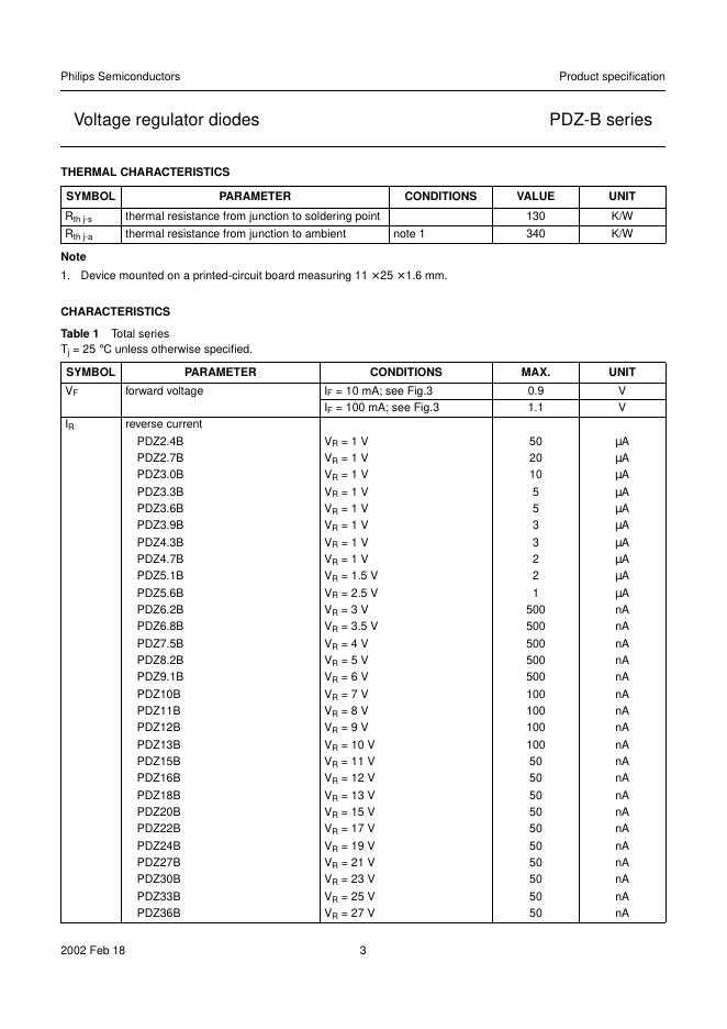 PHILIPS PDZ-B series Voltage regulator diodes 数据手册.pdf