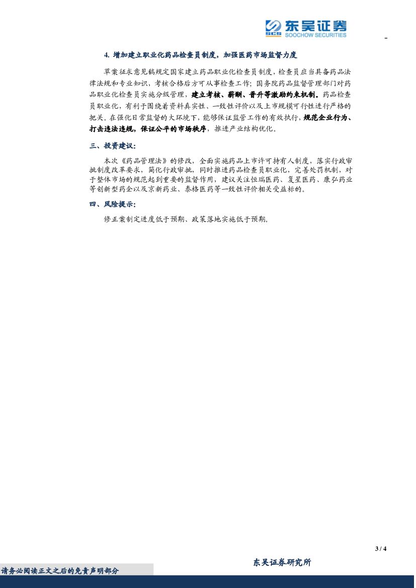 东吴证券:医药生物:《药品管理法》修订点评:推进审评审批制度改革,规范药品市场秩序.pdf