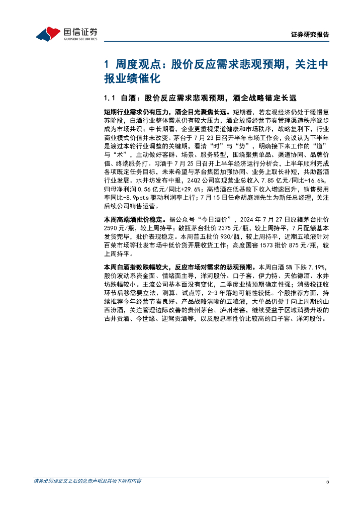 国信证券:食品饮料行业周报(24年第31周):股价反应需求悲观预期,关注中报业绩催化.pdf