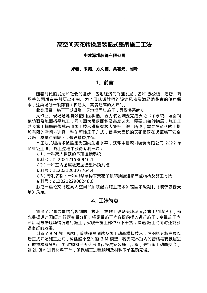 QHGF-2022098 高空间天花转换层装配式整吊施工工法.doc