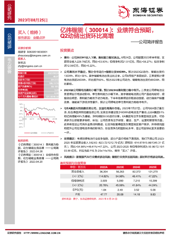 东海证券:亿纬锂能(300014)-公司简评报告:业绩符合预期,Q2动储出货环比高增.pdf