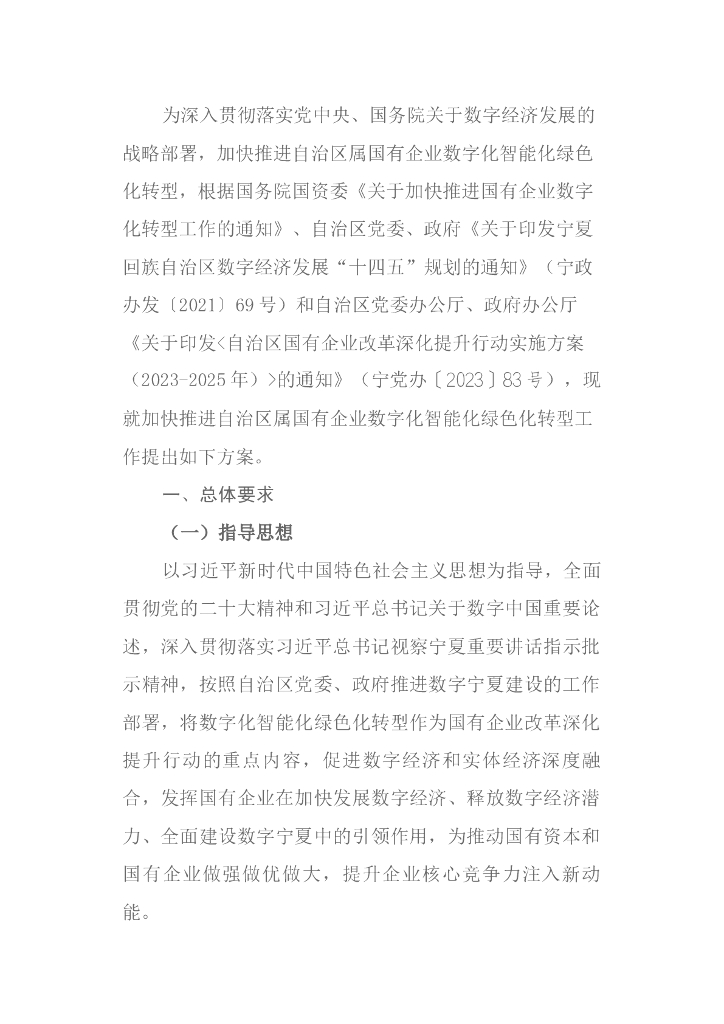 宁夏国资委:宁夏自治区属国有企业数字化智能化绿色化转型专项行动方案.doc