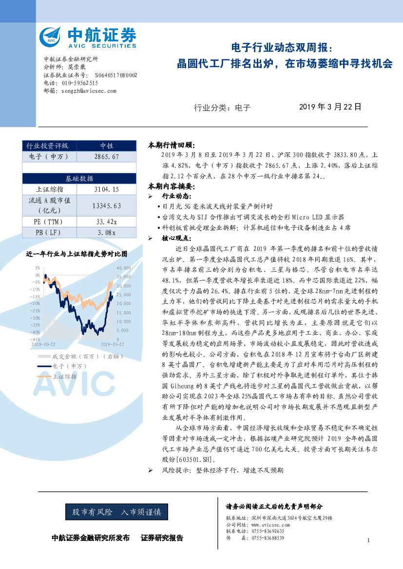 中航证券:电子行业动态双周报:晶圆代工厂排名出炉,在市场萎缩中寻找机会.pdf