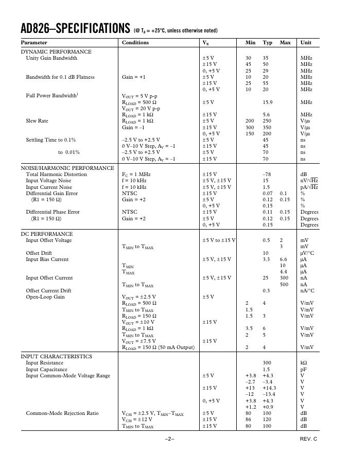 ANALOG DEVICES AD826 High-Speed, Low-Power Dual Operational Amplifier 数据手册.pdf