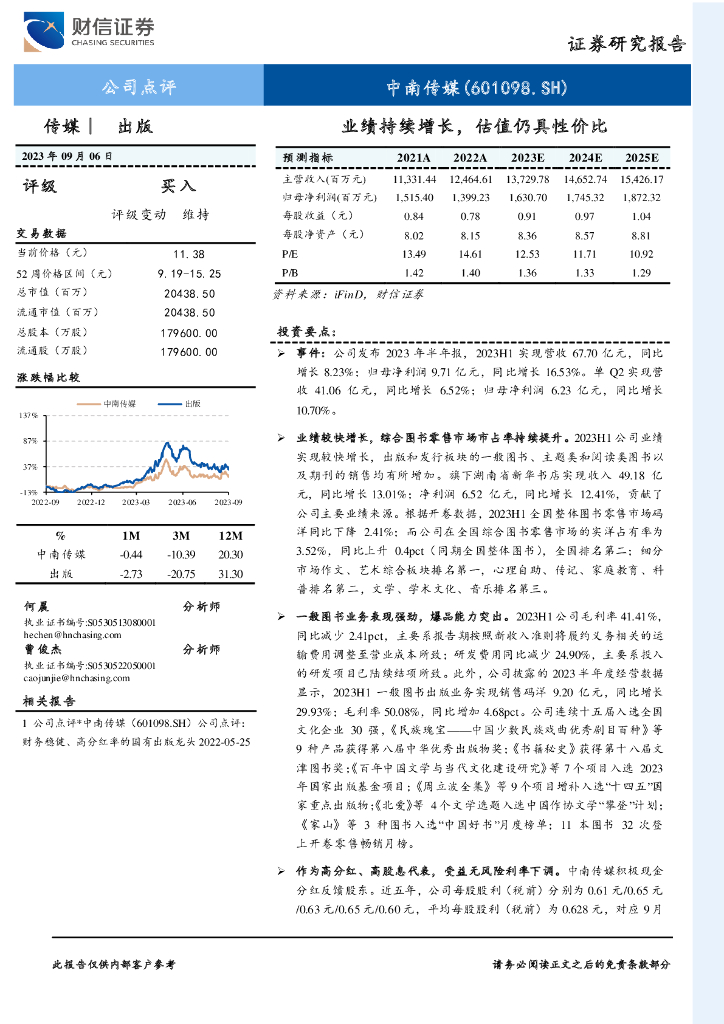 财信证券:中南传媒(601098)-业绩持续增长,估值仍具性价比.pdf