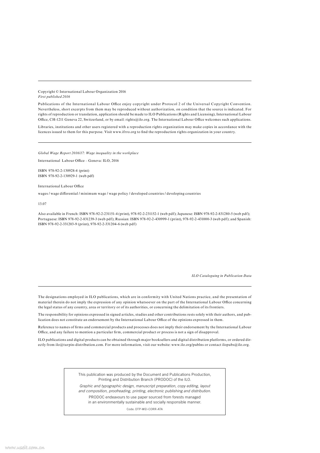 国际劳工组织:2016-2017全球工资报告,工作中的工资不平等(英文版).pdf