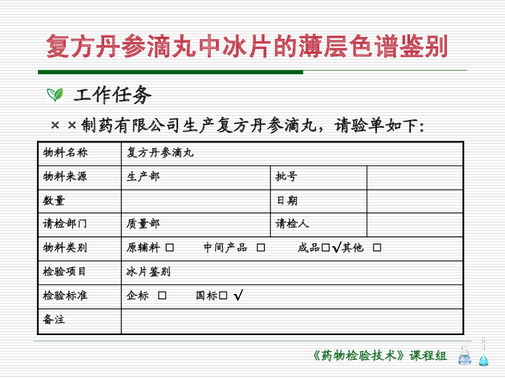 《药物检验技术》演示文稿-复方丹参滴丸中冰片的鉴别.pdf