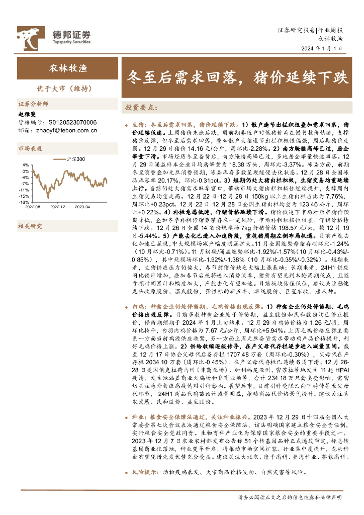 德邦证券:农林牧渔行业周报:冬至后需求回落,猪价延续下跌.pdf