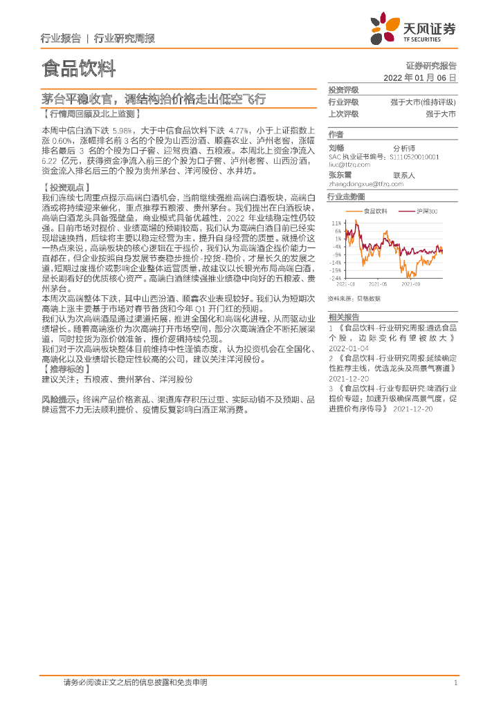 天风证券:食品饮料行业研究周报:茅台平稳收官,调结构抬价格走出低空飞行.pdf