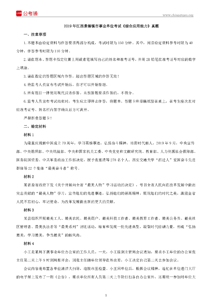 2019年江西景德镇市事业单位考试《综合应用能力》真题.pdf