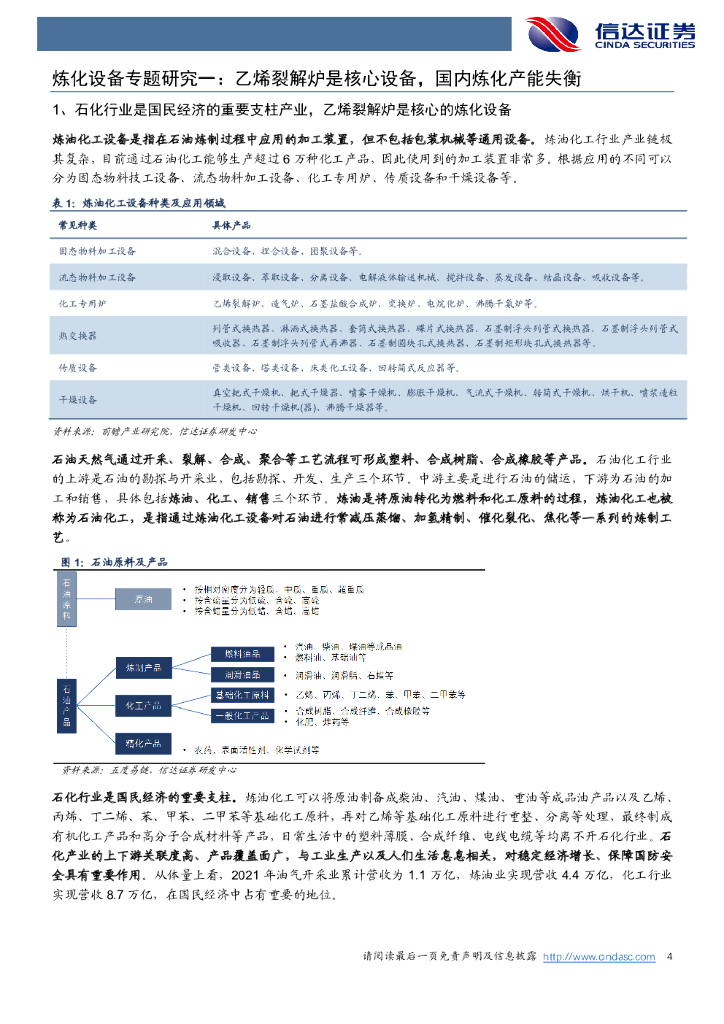 信达证券:机械设备:炼化设备专题研究一:乙烯裂解炉是核心设备,国内炼化产能失衡.pdf