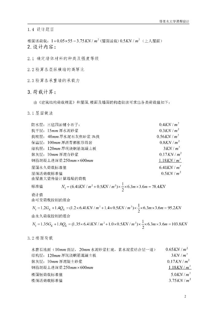 三层砌体结构办公楼课程设计计算书(PDF,9页).pdf