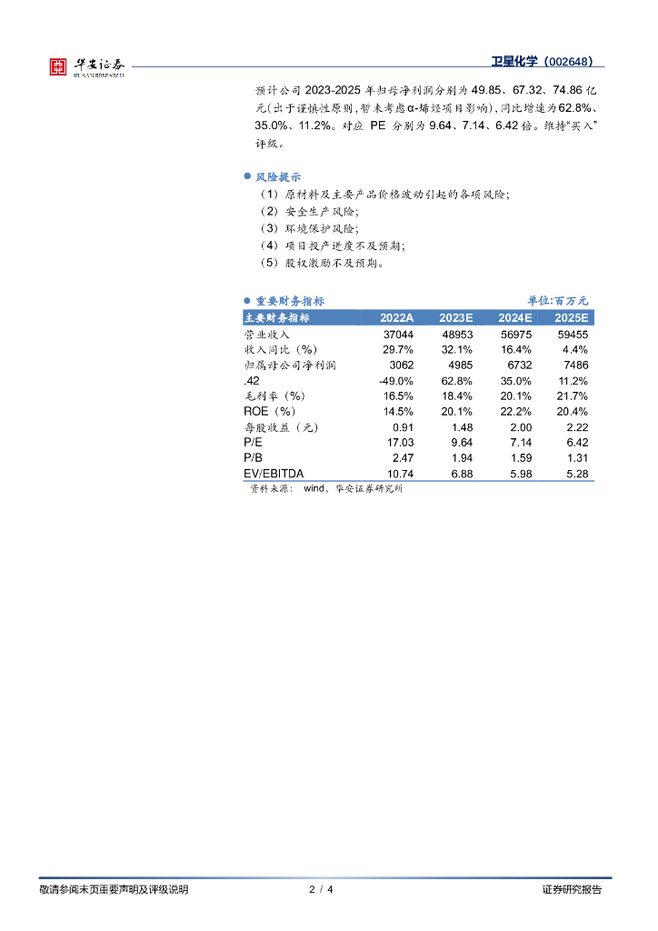 华安证券:卫星化学(002648)-四季度业绩稳健,新材料项目加速推进.pdf
