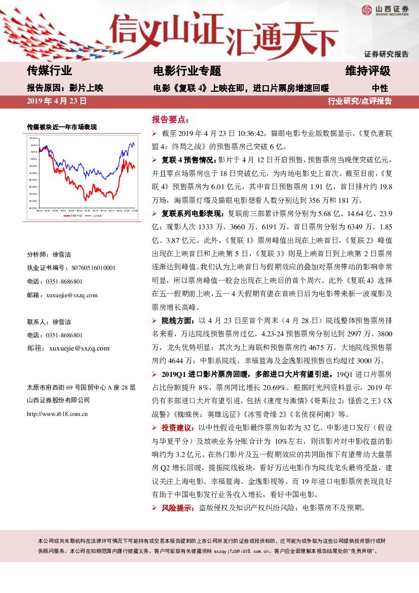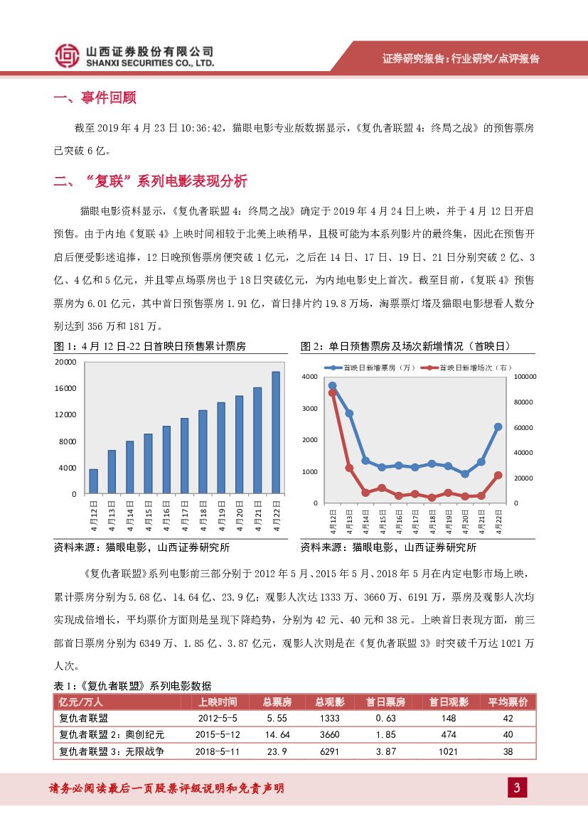 山西证券:电影行业专题:电影《复联4》上映在即,进口片票房增速回暖.pdf