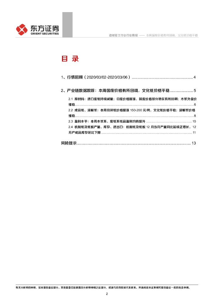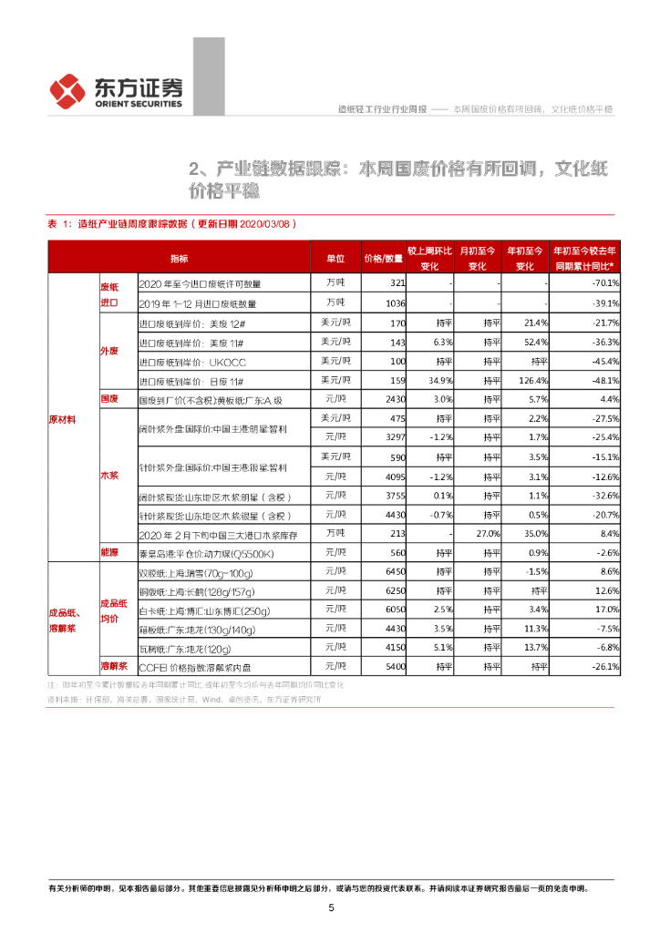 东方证券:造纸产业链数据每周速递:本周国废价格有所回调,文化纸价格平稳.pdf
