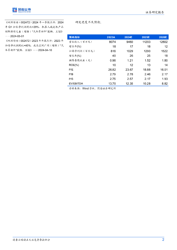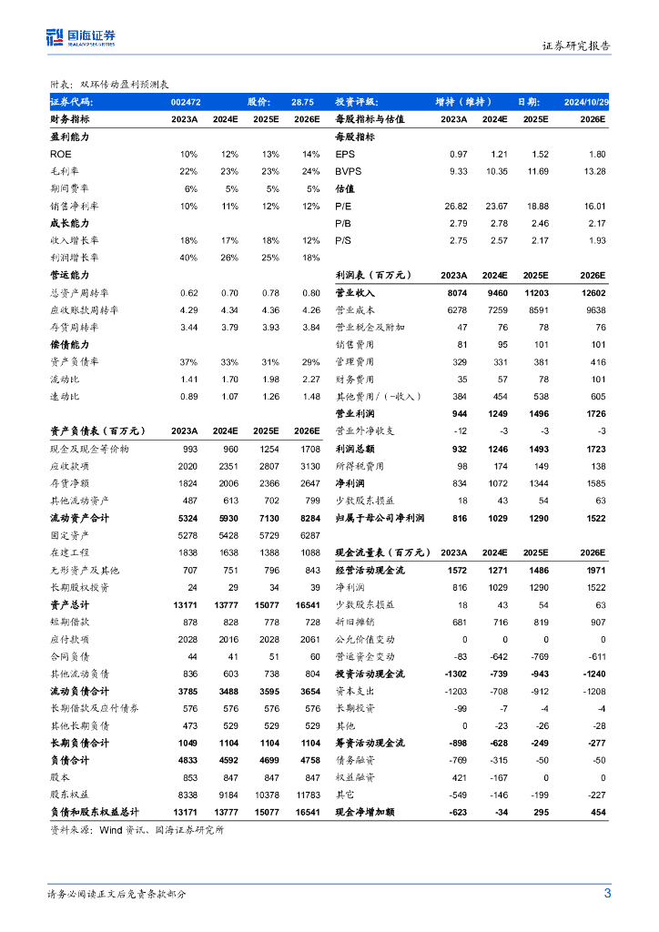 国海证券:双环传动(002472)-2024年Q3季报点评:2024年Q3营收&归母净利润同环比提升,齿轮产品矩阵持续完善.pdf
