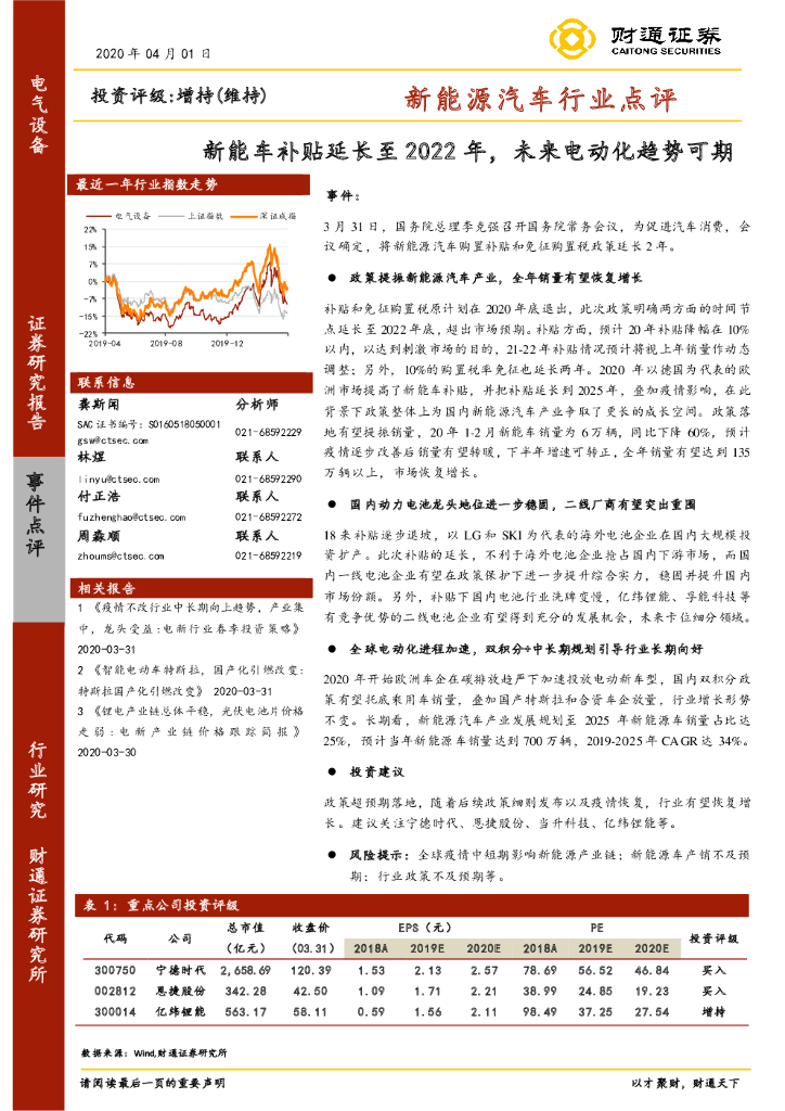 财通证券:新能源汽车行业点评:新能车补贴延长至2022年,未来电动化趋势可期.pdf