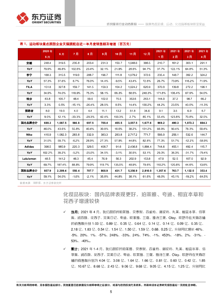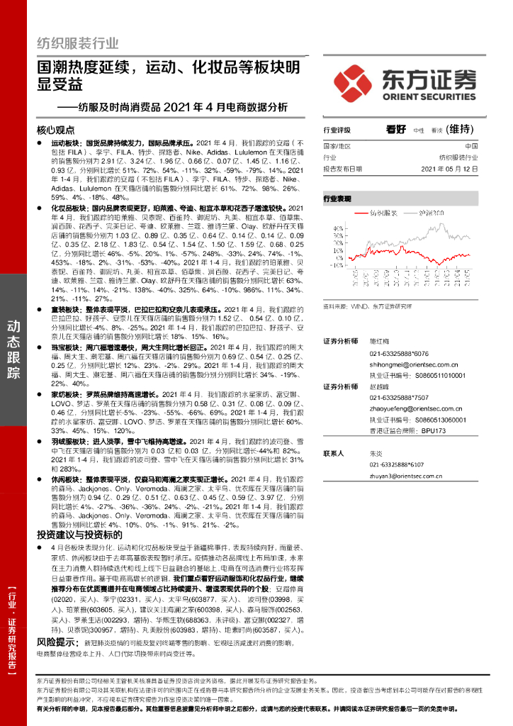 东方证券:纺服及时尚消费品2021年4月电商数据分析:国潮热度延续,运动、化妆品等板块明显受益.pdf