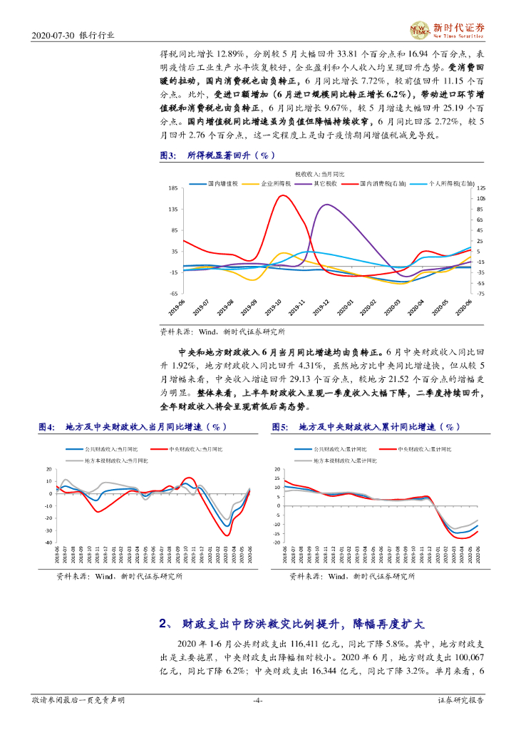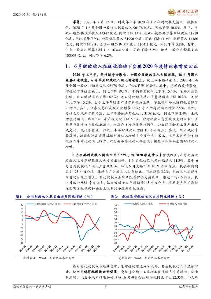 新时代证券:银行行业点评:2020年上半年财政数据点评-税收拉动下财政收入增速实现疫情以来首次回正,下半年积极财政仍将持续发力.pdf