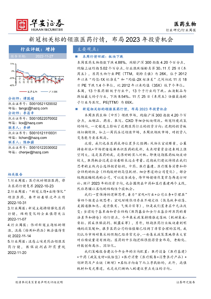 华安证券:医药生物行业周报:新冠相关标的领涨医药行情,布局2023年投资机会.pdf