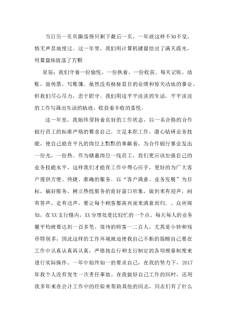 2017年银行柜员岗位工作总结.doc