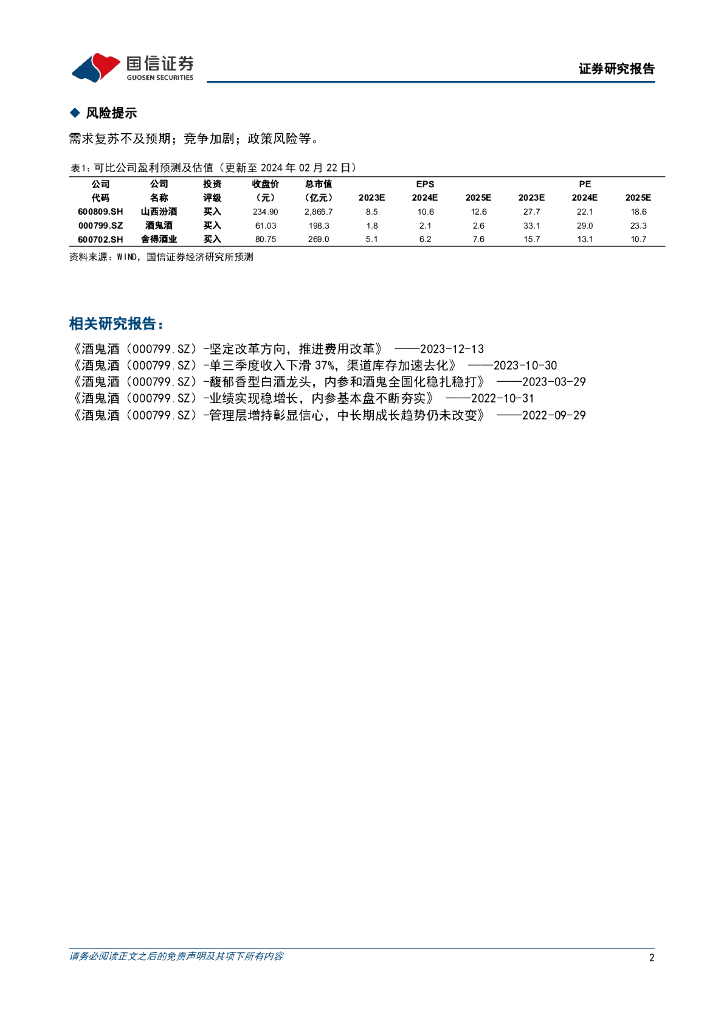 国信证券:酒鬼酒(000799)-春节期间渠道库存有序去化,2024年或有望实现恢复性增长.pdf