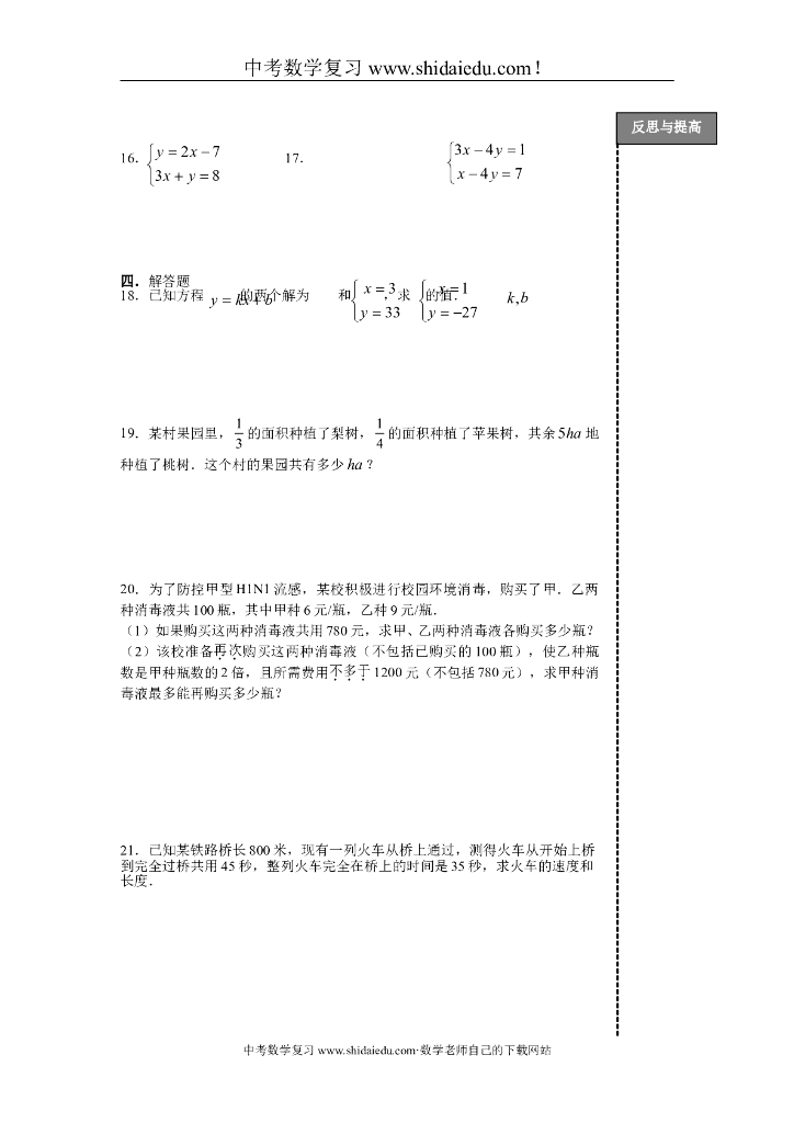 人教版数学九年级下中考复习《一元一次方程及二元一次方程(组)》导学案.doc
