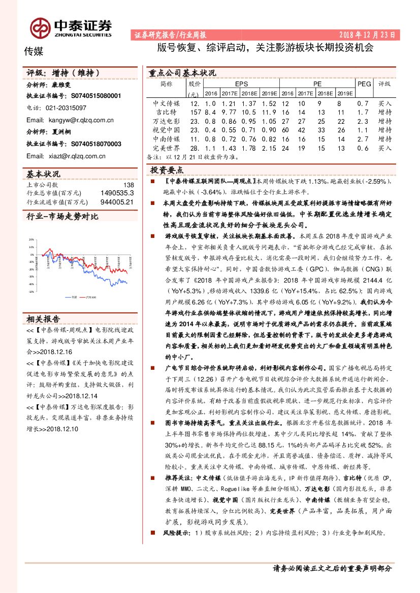 中泰证券:传媒行业周报:版号恢复、综评启动,关注影游板块长期投资机会.pdf